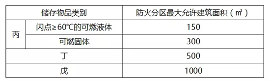 4、丙、丁、戊类物品库房的防火分区允许最大建筑面积应符合下表的规定。当设置有火灾自动报警系统和自动灭火系统时,允许最大建筑面积可增加1倍;局部设置时,增加的面积可按该局部面积的1倍计算。