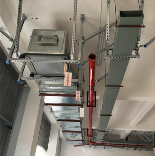 抗震支架是限制附属机电工程设施产生位移,控制设施振动,并将荷载传递至承载结构上的各类组件或装置。 抗震支架在地震中应对建筑机电工程设施给予可靠的保护,承受来自任意水平方向的地震作用;抗震支架应根据其承受的荷载进行验算;组成抗震之架的所有构件应该采用成品构件,连接紧固件的构件应便于安装;保温管道的抗震支架限位应按照管道保温后的尺寸设计,且不应限制管道热胀冷缩产生的位移。